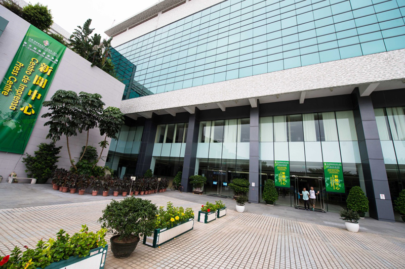 这是10月9日拍摄的新闻中心外景。当日,中国-葡语国家经贸合作论坛第五届部长级会议新闻中心正式启用。中葡论坛将于10月11日至12日举行。新华社记者 张金加 摄