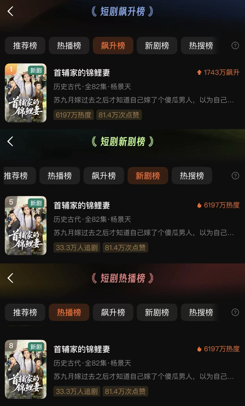 该剧自开播以来,其市场表现恰如其名,自带“锦鲤”热度。在红果短剧平台上,《首辅家的锦鲤妻》长期稳居热播榜TOP位置,累计热度值突破6200万大关,讨论度与点击量持续攀升。其紧凑的节奏、反套路的情节以及苏九月“小手一挥,脱贫大路笔直向前”的爽感叙事,牢牢抓住了当下短剧用户的核心偏好,被观众评价为“一看就上头,根本停不下来”。