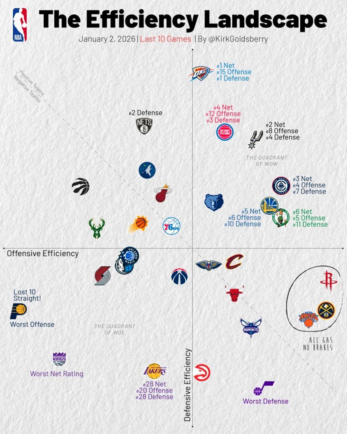 更何况,球队目前势头正盛。过去十场比赛,火箭队的进攻效率位居全联盟第一。自赛季初以来,他们的篮板争抢效率更是高达56.5%,篮板净胜更是达到了惊人的11.4个,这在NBA历史上堪称前所未有的纪录。