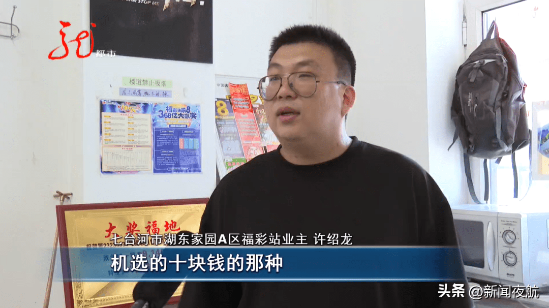 许绍龙回忆说,这张中奖彩票应该是23日上午10点多钟卖出的,买彩票的人也不是老彩民,是随机选的,总共买10块钱的彩票,没想到就这么幸运的中奖了,这期双色球全国开出五注大奖,七台河一注就被这位陌生的彩民获得。