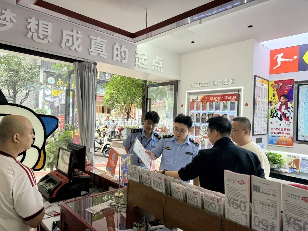 垫江县体彩办联合县文旅委执法支队、县公安局经侦大队,对辖区体彩实体店开展联合检查,重点督导安全合规销售情况,严厉查处销售外围、私彩及非法赌博等违法行为。结合世界杯临近的节点,联合检查组着重强调,各实体店须严守法律法规,落实责任彩票要求,杜绝向未成年人售彩及各类违规售彩行为,共同守护公平公正的购彩环境。
